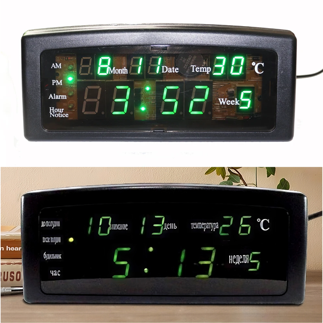 Настільний годинник з будильником і календарем, CX 868 / Електронні годинники з підсвічуванням / Цифровий годинник