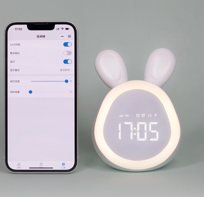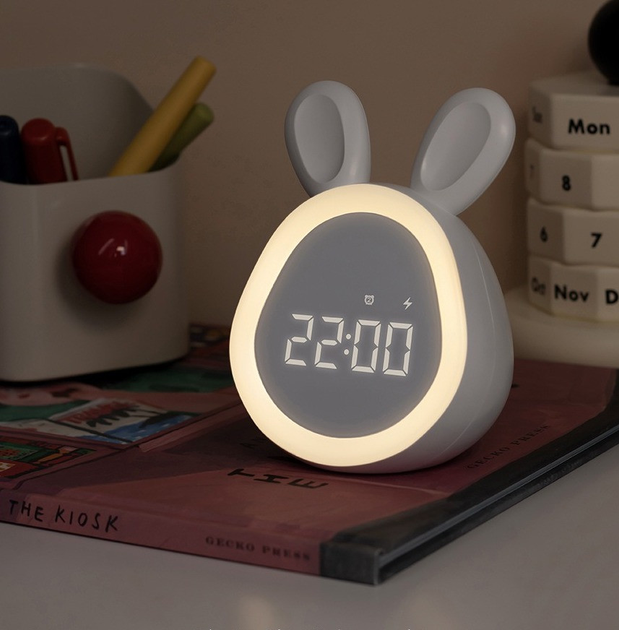 Електронний годинник-нічник Зайчик з LED-підсвіткою будильником і акумулятором 1500 мА·год