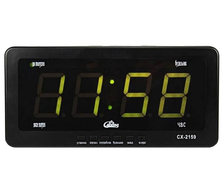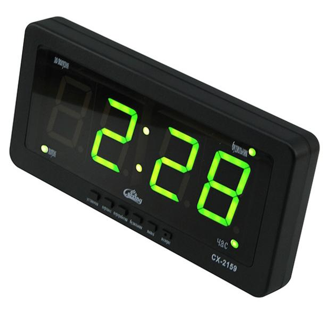 Настільний годинник електронні Caixing CX-2159 із зеленим підсвічуванням, чорні (SH015399)