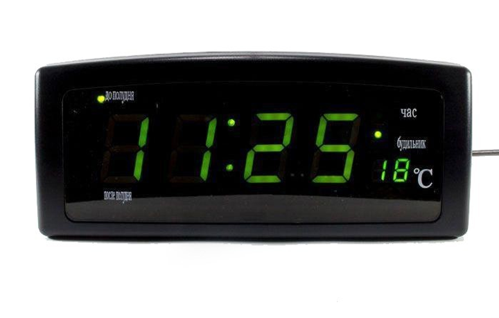 Годинник електронний настільний Caixing CX-818 з великими зеленими цифрами з будильником та термометром 220 W Чорний
