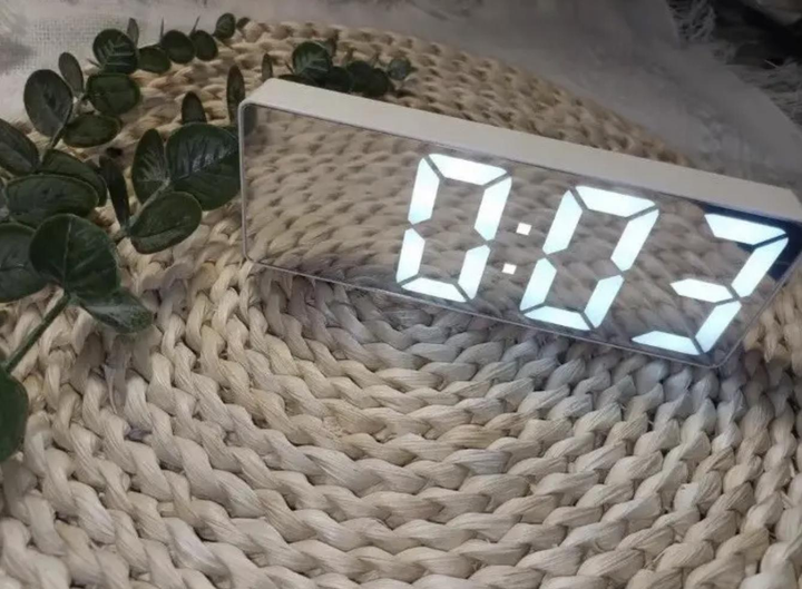 Настільний годинник електронний, LED дисплей, будильник, термометр білі дзеркальні