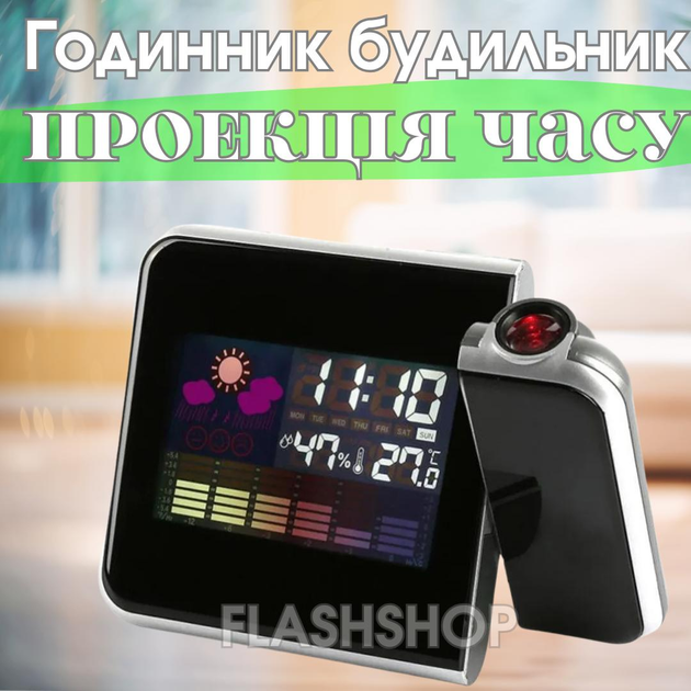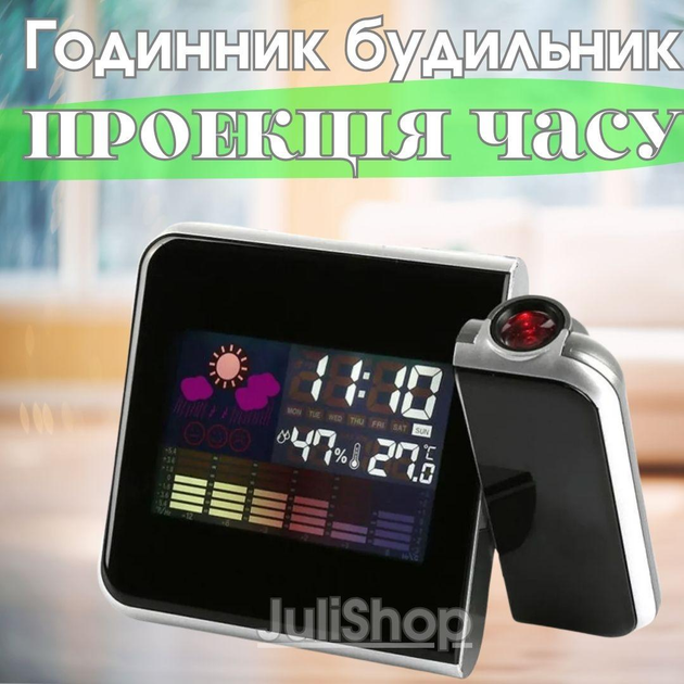 Годинник будильник ПРОЕКЦІЯ часу метеостанція, температура, вологість (чорний)