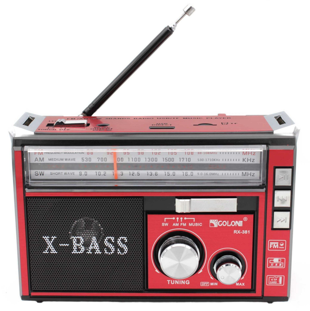 Портативний радіоприймач GoVern (Golon) RX-38І радіо акумуляторне з ліхтарем з Bluetooth RED