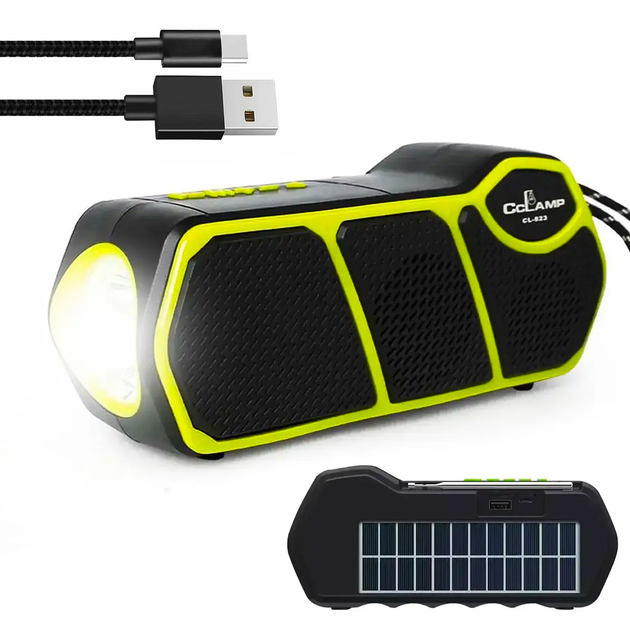 Радіоприймач із сонячною панеллю та Powerbank (1500мАг), МР3-плеєром, SL-823 / Портативна бездротова Bluetooth колонка з LED