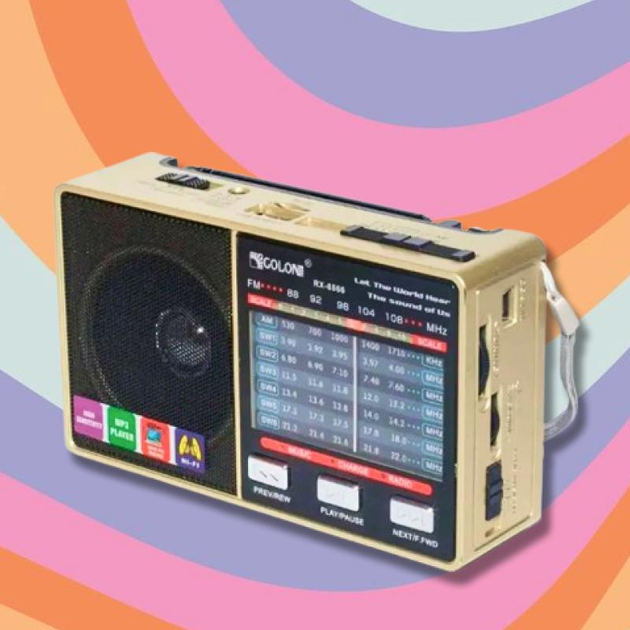 Портативний радіоприймач Golon RX 66BB ФМ радіо програвач від акумулятора мережі батарейок, Золотий
