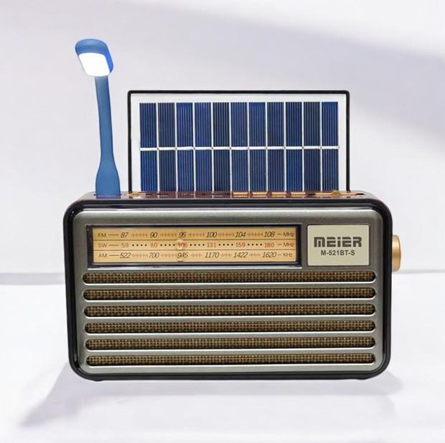 Радіоприймач Solar Radio на акумуляторі із сонячною панеллю FM портативний Meier M-52I BT-S USB TF AUX Bluetooth