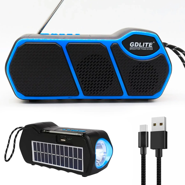 Радіоприймач на солнечній батареї з фонариком 3в1 з PowerBank 1500 mAh, USB-зарядкою, GD-LITE-11B (L)