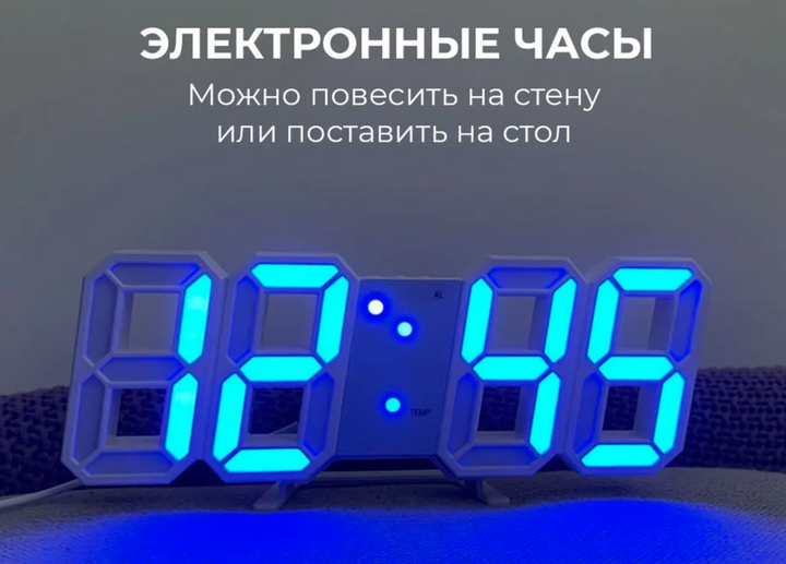 Годинник настільний VST LED-6802 з будильником і термометром від USB білий з синіми цифрами