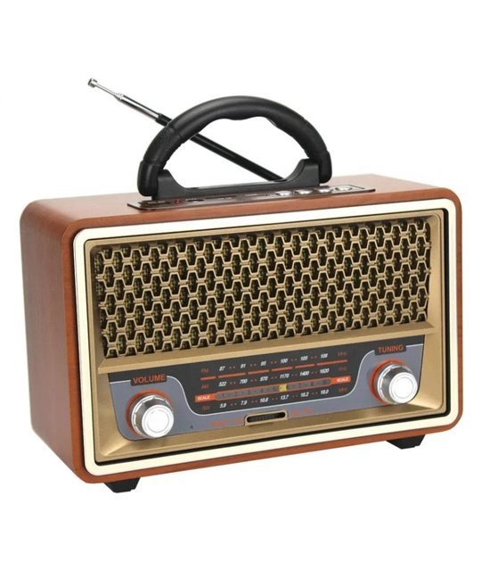 Радіоприймач Ретро акумуляторний bluetooth MEIER M 35 BT USB+SD Коричневий