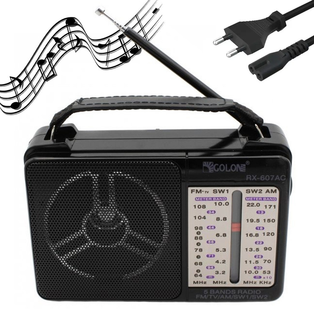 Радіоприймач на батарейках та від мережі GOLON RX-607 / Потужний 4-хвильовий приймач / Радіоприймач ФМ