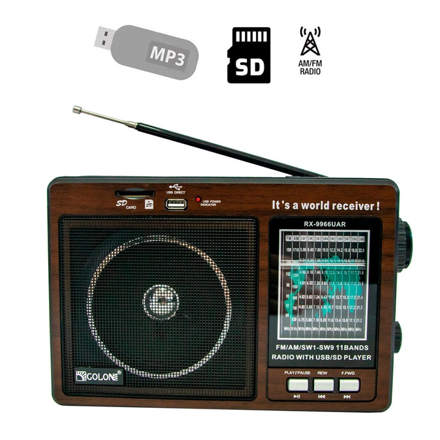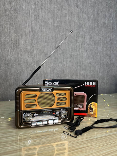 Портативне радіо Golon Коричневе, радіоприймач на батарейках з USB входом для флешки