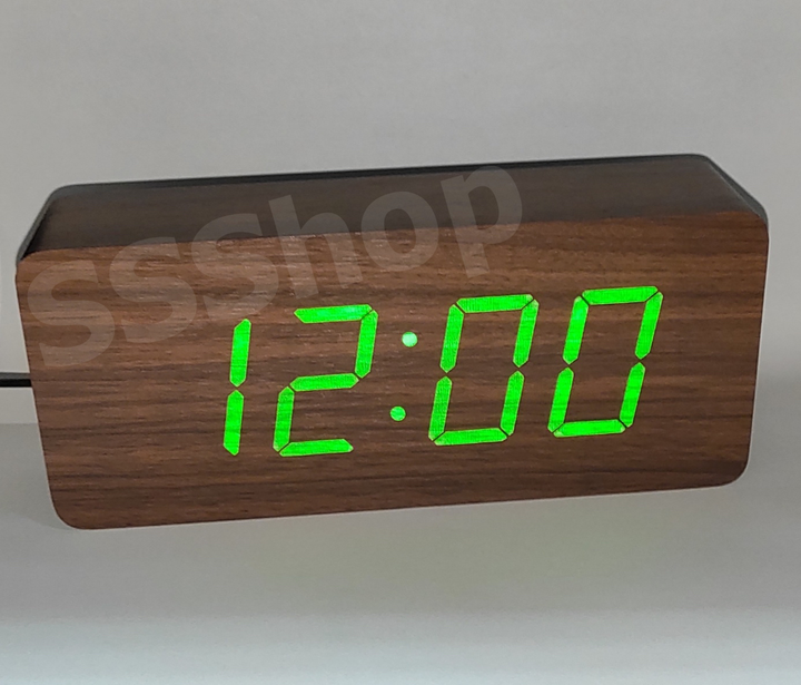 Електронні світлодіодні настільні годинники Usams Коричнево-зелені з великими цифрами