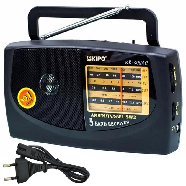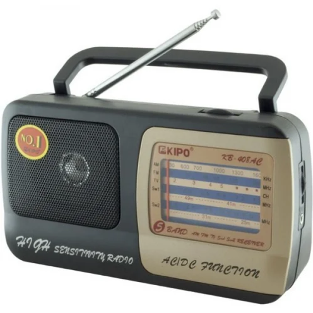 Радіоприймач KIPO KB-308AC, портативна модель на 5 хвиль, працює від батарей та електромережі