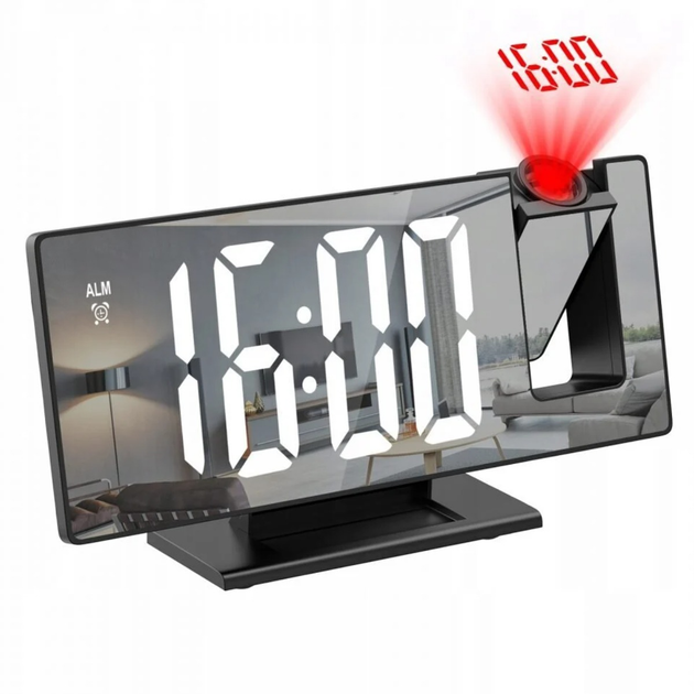 Годинник настільний з будильником дзеркальний LED дисплей і проекція часу DS-3618LP