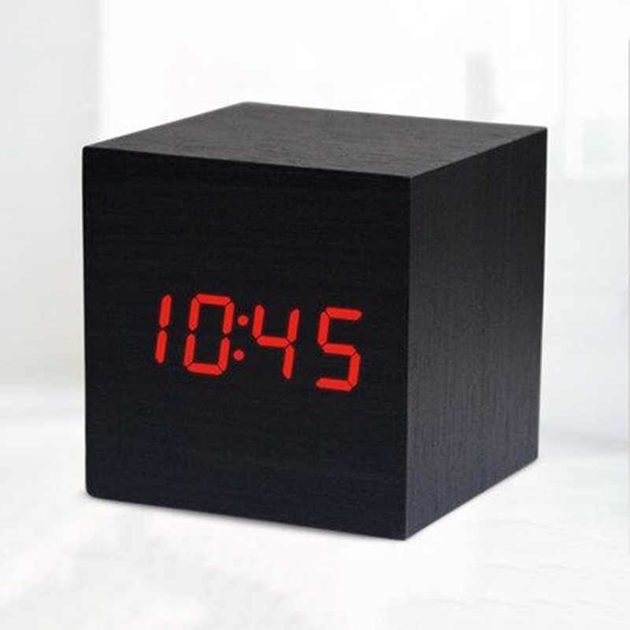Настільний годинник дерев'яний КУБ VST-872S - Час, Температура, Вологість - вбудований Термометр і Гігрометр (504034) Black