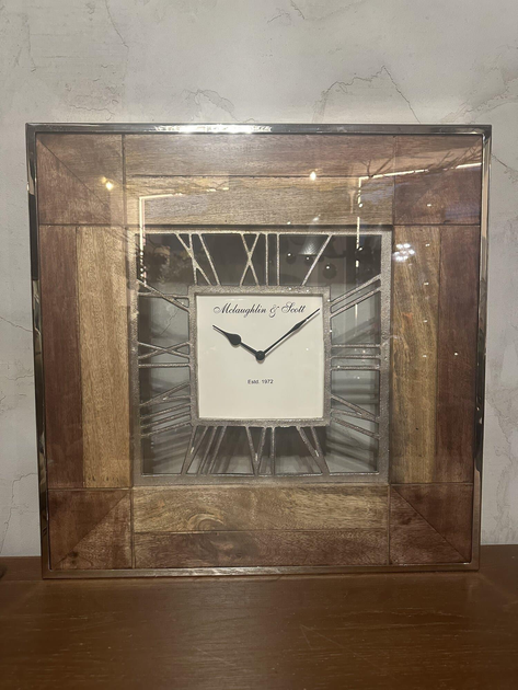 Вінтажний настільний годинник Гранд Він Алюм 60х60 см дерево манго + алюміній
