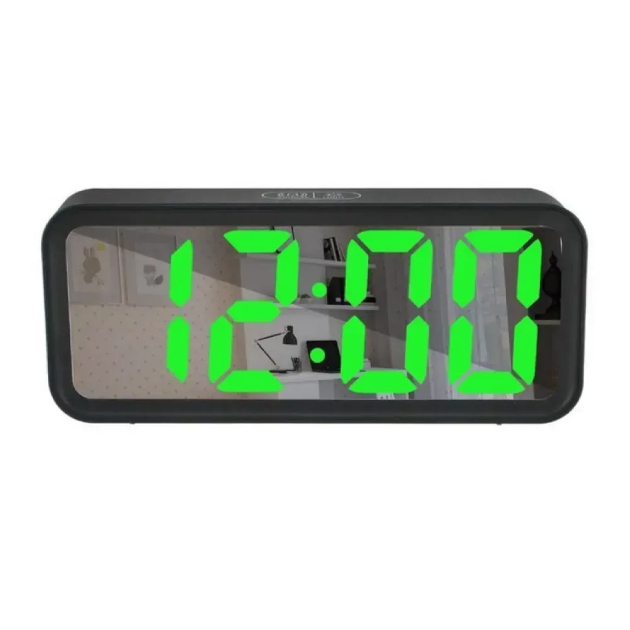 Дзеркальний настільний годинник з термометром і будильником Gaosiio DS-3658 із зеленим підсвічуванням