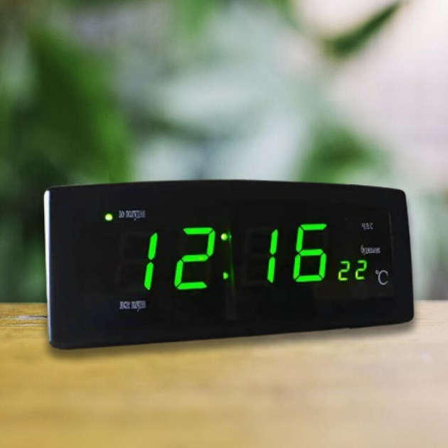 Мережевий настільний годинник Caixing CX-2159 із зеленим підсвічуванням і будильником 1238