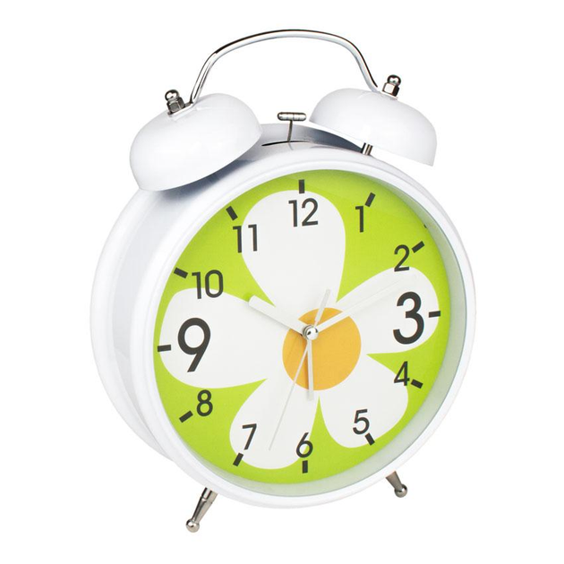 Годинник настільні з будильником Моєн Ромашка 30х22х8 см Зелений Білий (19157)