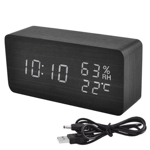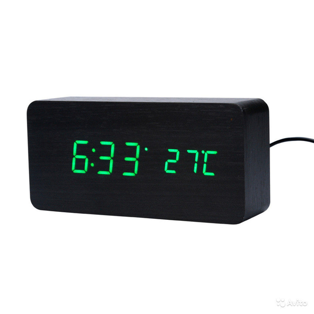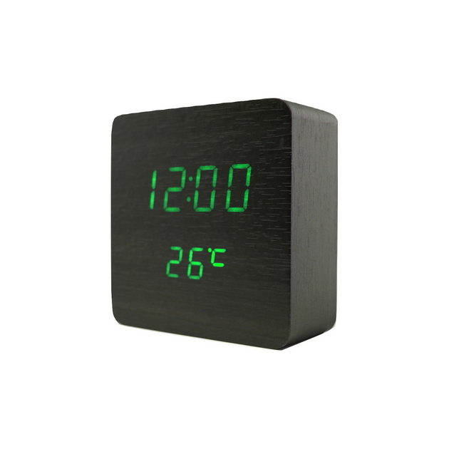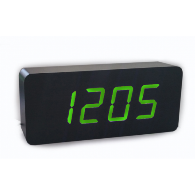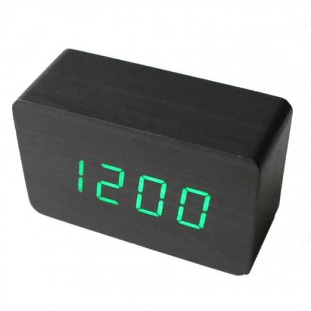 Електронні настільні годинники-будильник LED WOOD CLOCK VST-865+ під дерево чорні із зеленим підсвічуванням