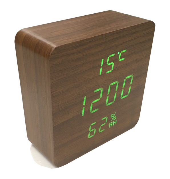 Електронні настільні годинники-будильник з термометром і гігрометром LED WOOD CLOCK VST-872S+ під дерево коричневі з зеленою