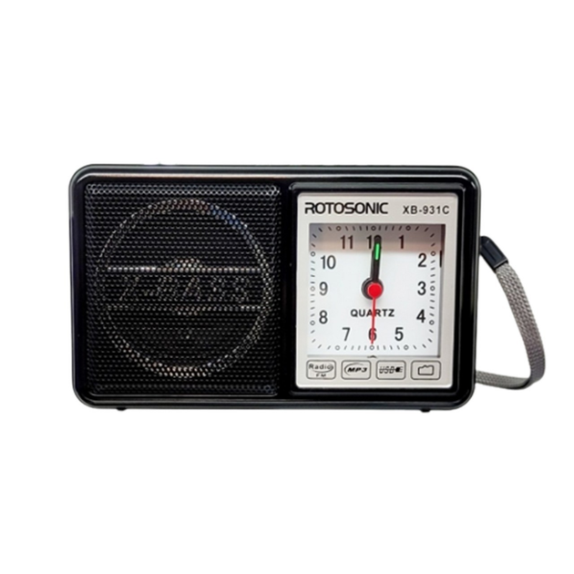 Радіоприймач FM Rotosonic XB-931C з акумулятором, Портативний годинник, Зчитувач MP3-TF/USB та Ліхтар Black