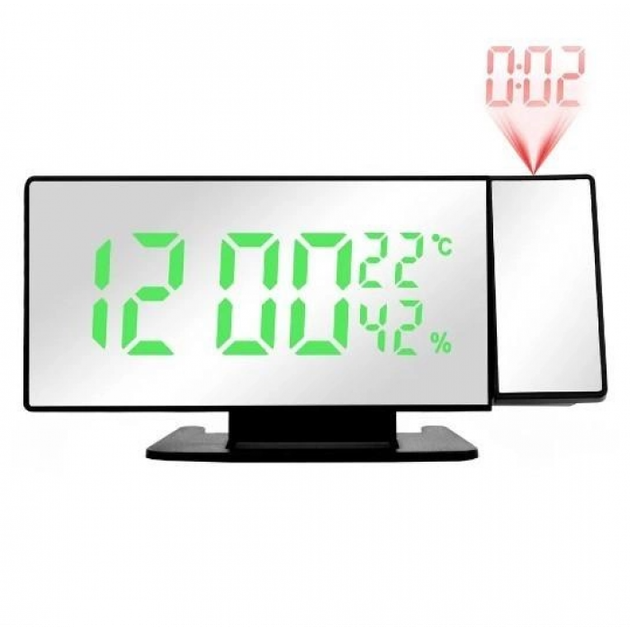 Настільний електронний годинник з проекцією VST-900-4 термометр дзеркальний дисплей Чорний з зеленим