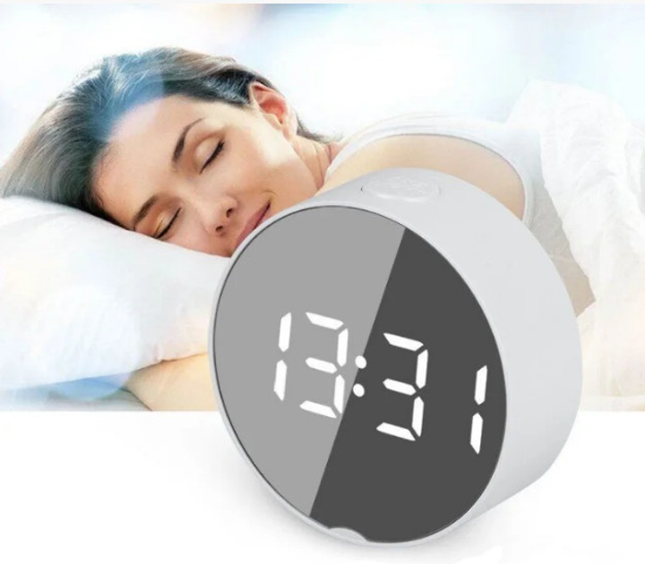 Настільний електронний дзеркальний LED годинник DT-6505 з будильником, календарем та термометром