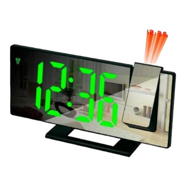 Годинник електронний LED DS 3618 LP з проектором часу Чорний із зеленим підсвічуванням
