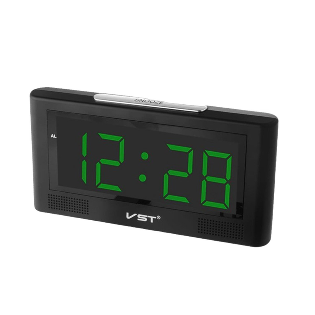 Електронний настільний дротовий цифровий годинник VST 731 52742 із зеленим підсвічуванням, Чорний