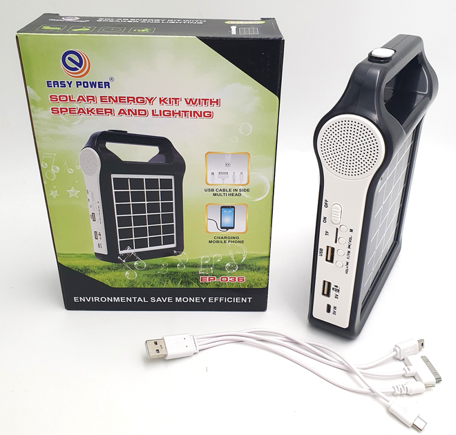 Радіоприймач акумуляторний радіо-ліхтар із сонячною панеллю EASY POWER EP-036
