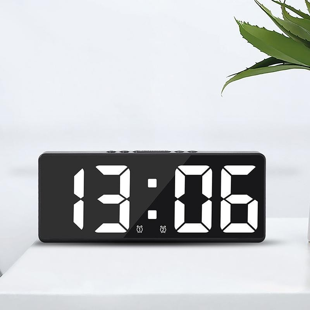 Цифровий світлодіодний будильник Дзеркальний годинник з календарем температури та дати Чорний