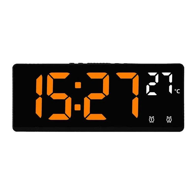 Цифровий світлодіодний настільний годинник DS-6631, 2 будильники, термометр, корпус чорний, колір індикації оранжевий