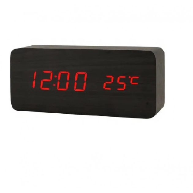 Цифровий світлодіодний настільний годинник DS-6631, 2 будильники, термометр, корпус чорний, колір індикації оранжевий