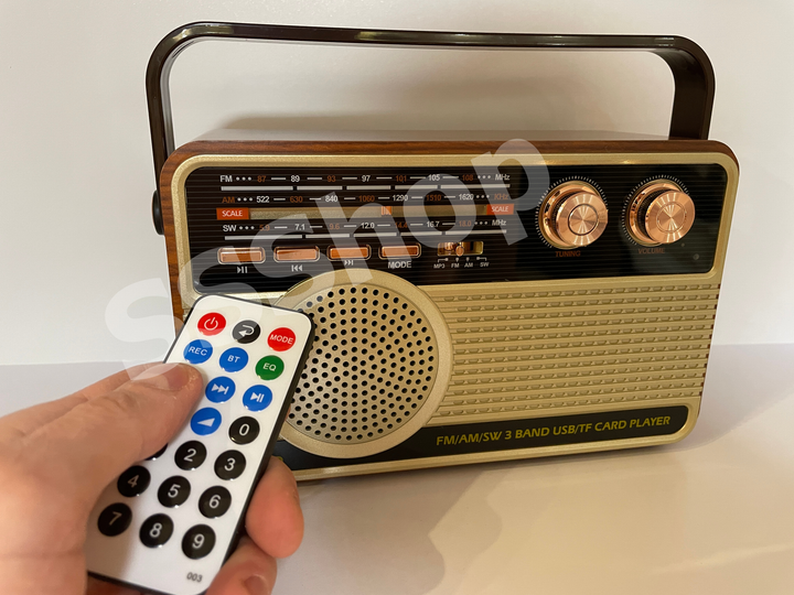 Радіоприймач Bluetooth акумуляторний з пультом управління радіо Kemai (РЕТРО-507-BT) з ручкою