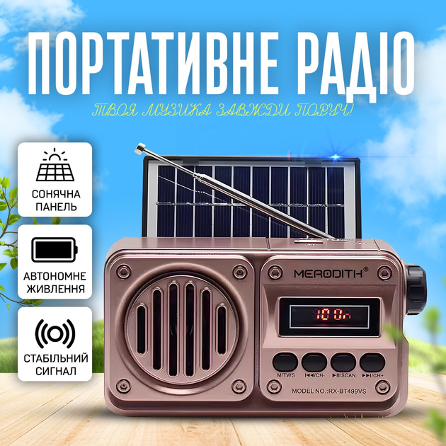 Радіо з ліхтариком NS-S270-S Voltronic Bluetooth колонка із сонячною батареєю для відпочинку та кемпінгу (YU-GT33A)
