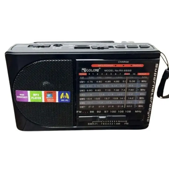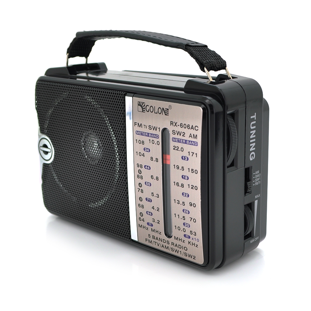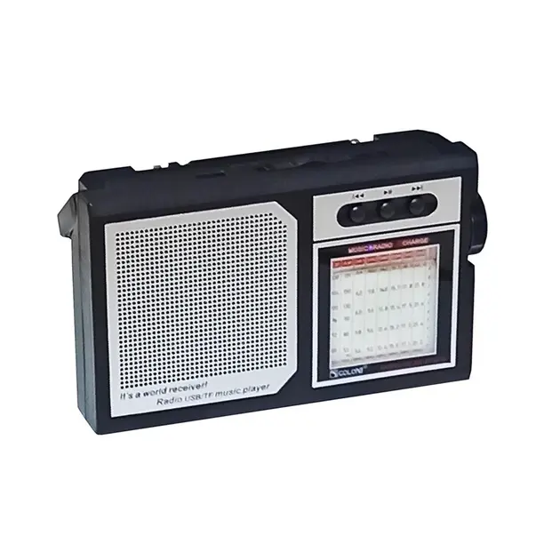 AM/FM/SW приймач, відтворення музики з USB/SD носіїв, робота від батарейок, акумулятора типу 18650, мережі 220 В. Особливості: робота у трьох діапазонах – FM – 88-108 МГц; AM - 530-1710 КГц; SW - 5,9-18,0 МГц.