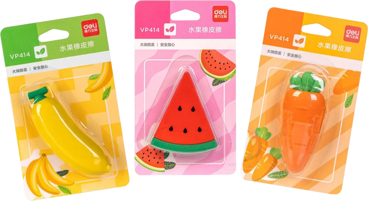 Набір гумок Deli VP414 Фрукти, овочі PVС х 3 шт (2000400811860)