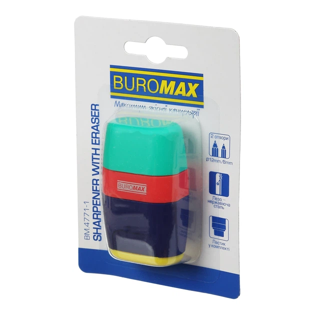 Ластик з чінкою, 2 отвори, пластиковий корпус, із контейнером, BM.4771-1