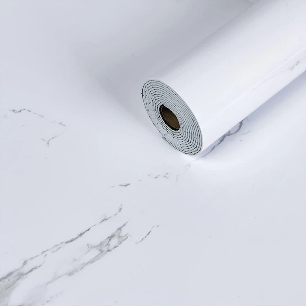 ПВХ плитка в рулоні Білий повітряний Мармур Рулон 0,6*3m*2мм глянець Білий Під мармур самоклеючий ламінат