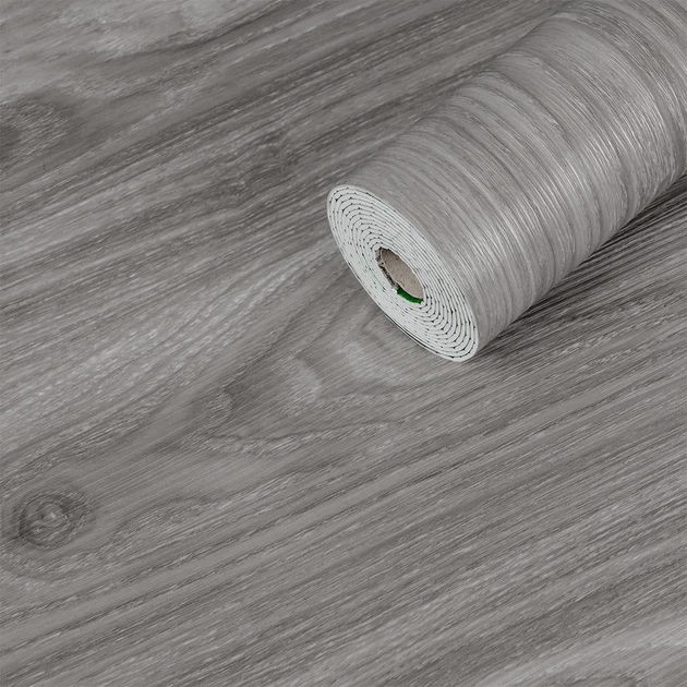 Самоклеюча вінілова плитка ПВХ гнучкий ламінат в рулоні для стін і підлоги під дерево 600*3000*2мм Світло-сірий