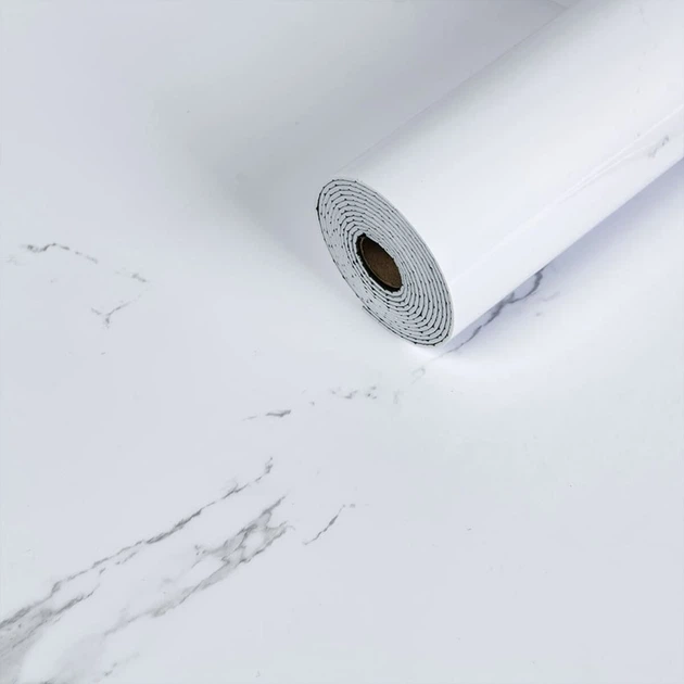 Самоклеюча вінілова плитка в рулоні білий мрамор 3000х600х2мм Глянсова SW-00001287