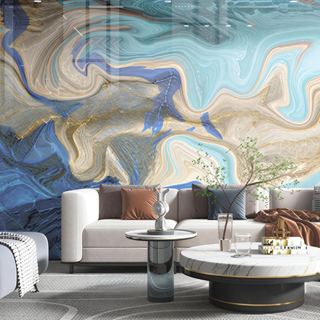 Самоклеюча вінілова картина на стіну в рулоні (6 рулонів) "Акварельний мармур" 3600*2800*2мм Синій
