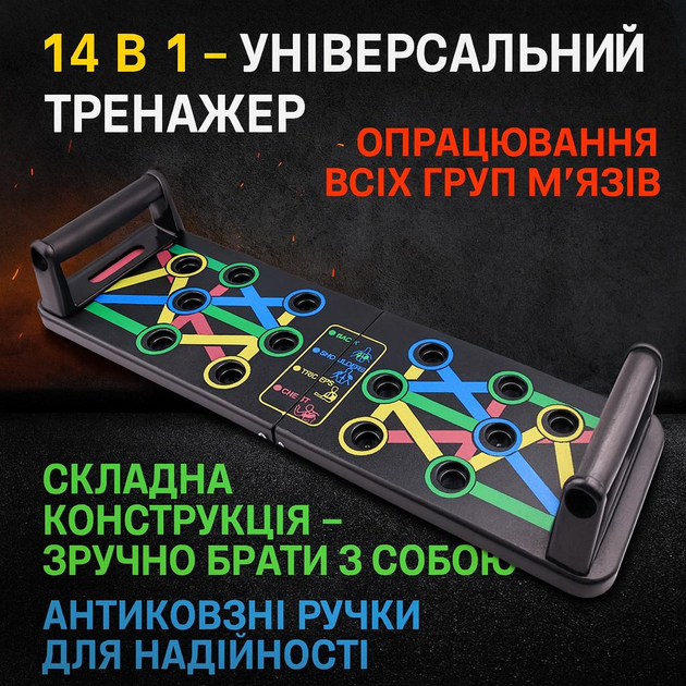 Дошка для віджимань упори Foldable Push Up Board JT-006 14 в 1 універсальна Чорна портативний портативний тренажер платформа