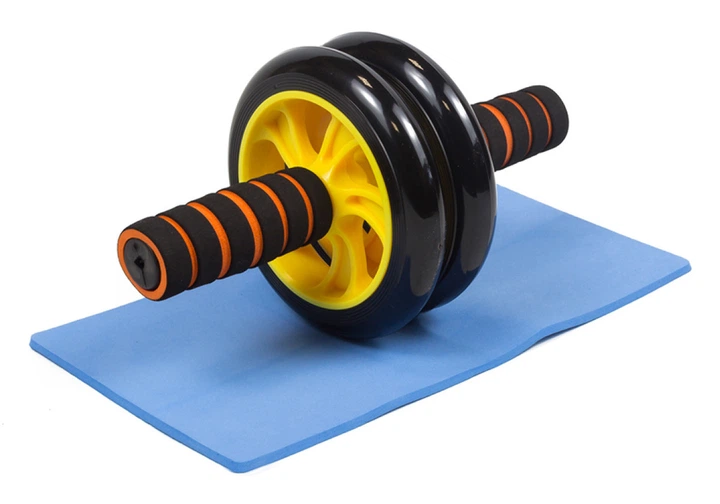 Ролик для пресу подвійний EasyFit з килимком Жовтий