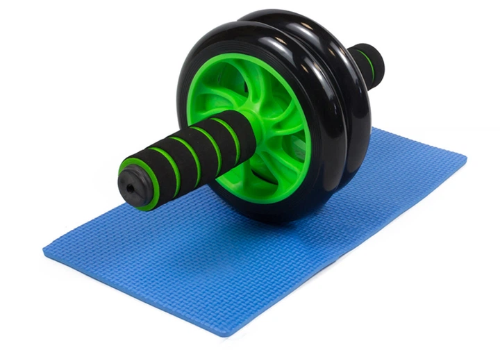 Ролик для пресу подвійний EasyFit з килимком Зелений