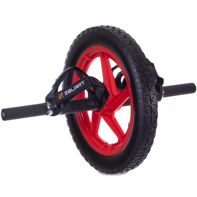 Колесо для преса (ролик для преса) одинарне Zelart (d-35см, довжина-57см, метал, пластик, ручка-пластик, чорний-червоний) (F
