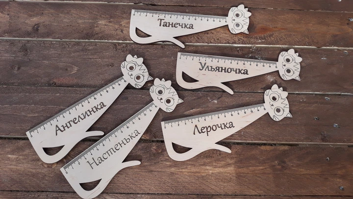 Іменна дерев'яна лінійка 15 см у формі котика HWD (A044)