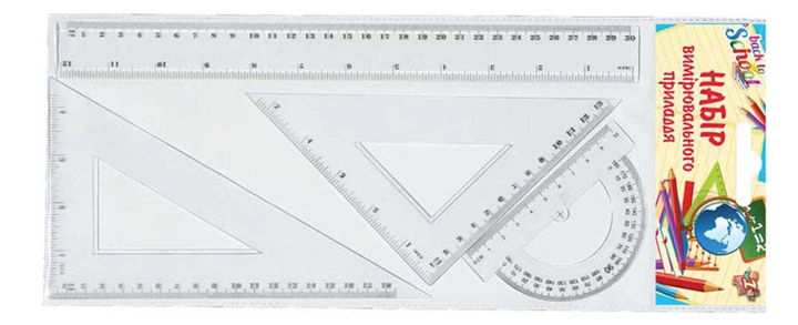 Комплект ZiBi: лінійка 25см 2 косинця транспортир з блакитною смугою (ZB.5681)