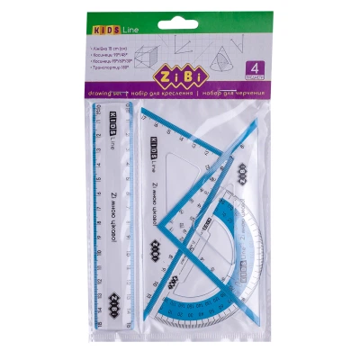 Лінійка ZiBi Комплект: Лінійка 15см, 2 косинця, транспортир, з блакитною смужкою (ZB.5687-14)